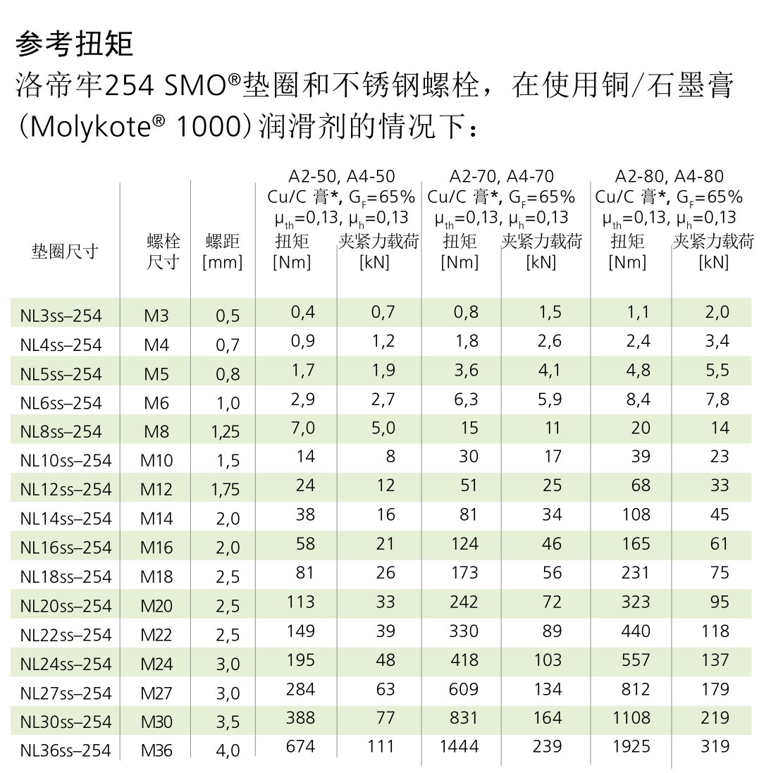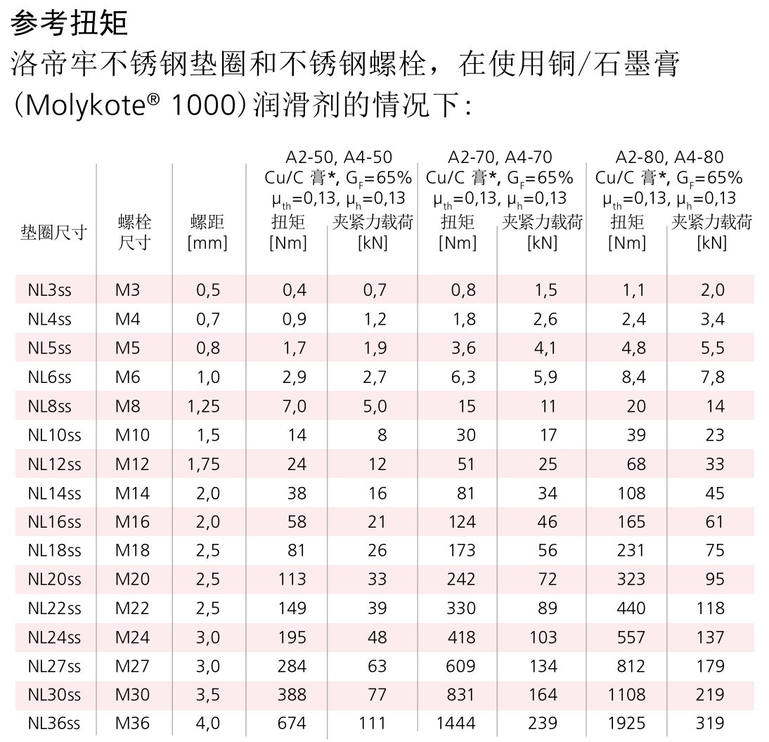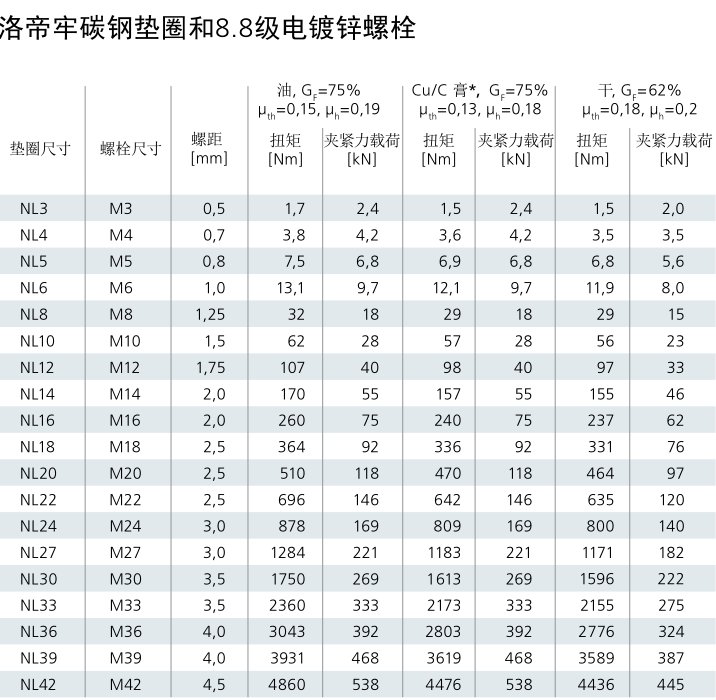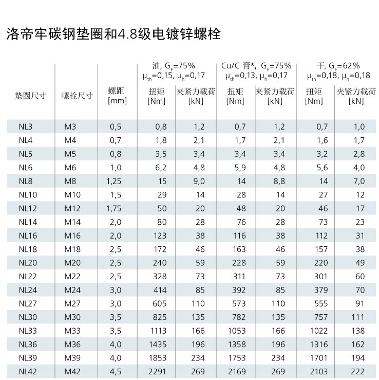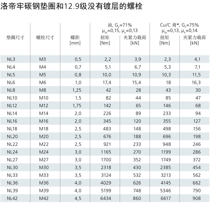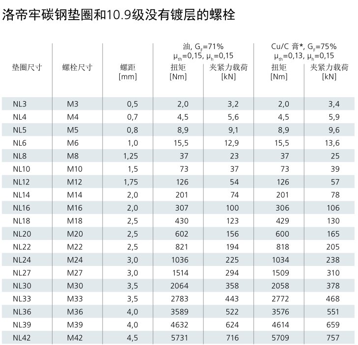 下方的摩擦系数依测试而定。欲知其他级别的螺栓配套洛帝
