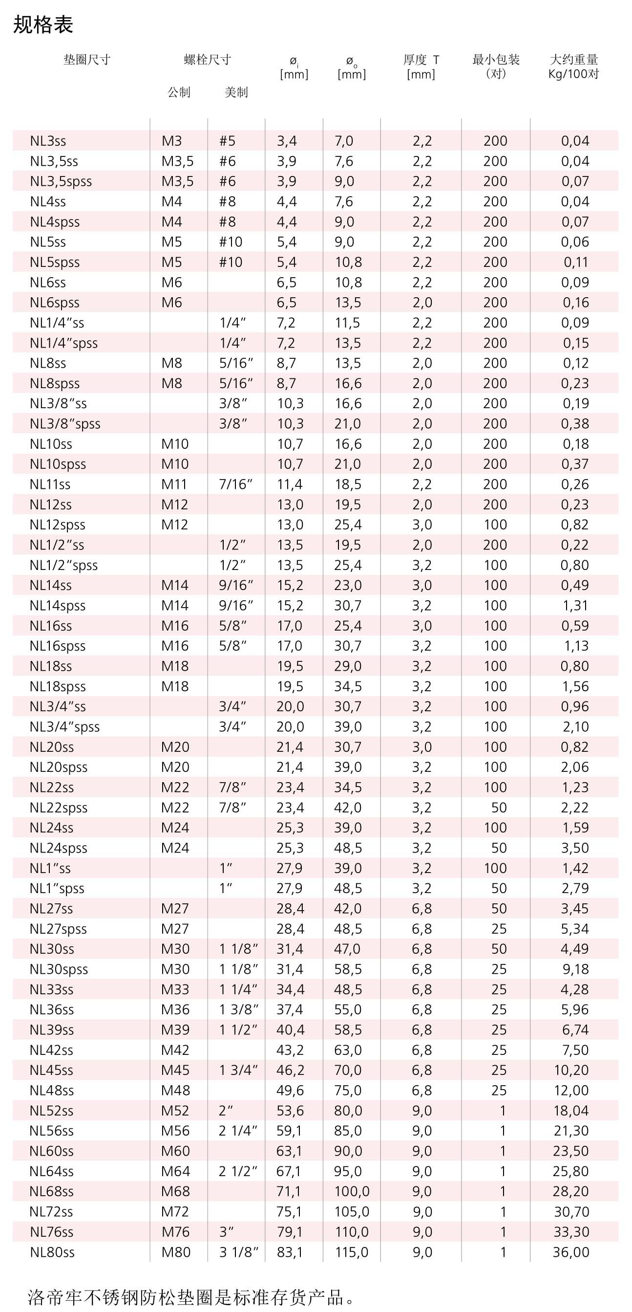 洛帝牢防松垫圈的材质和类型表