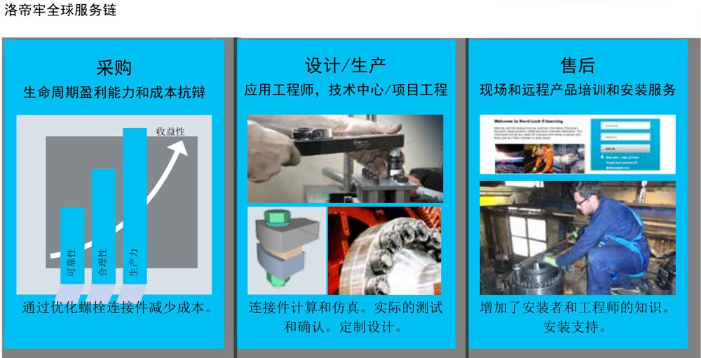 当你在设计一种运通的时候,洛帝牢提供的不仅仅是螺栓的锁紧系统,而且它将带给你贯穿始终的寿命。当你使用洛帝牢产品的时候,你还会受益于我们的经验和技术。我们引领你走向最佳的螺栓连接设计。