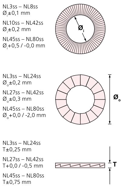 根据DIN 974,标准外径的洛帝牢防松垫圈可以是使用在沉孔的螺丝紧固方式上。如图所示的 垫圈安装在标准螺丝的头部下方。
