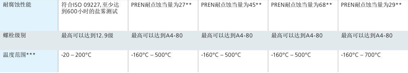 - 和标准的螺栓和螺母有相同的温度特性