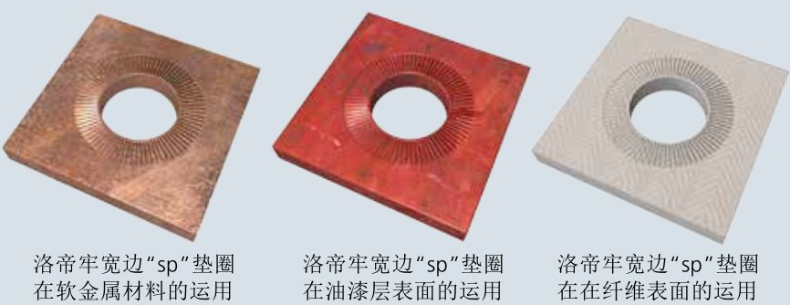 洛帝牢防松垫圈嵌入对应基材表面并安全锁固住螺栓。
