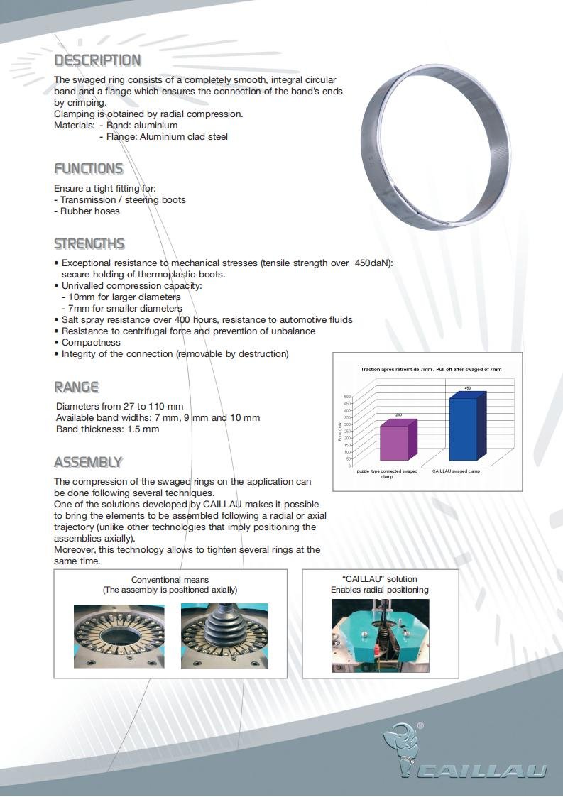 The swaged ring consists of a completely smooth, integral circular  band and a flange which ensures the connection of the bands ends by crimping.